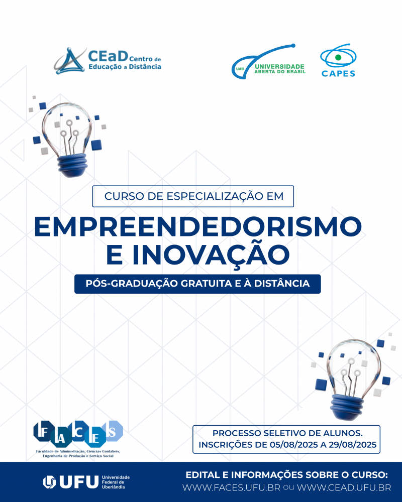 Curso ofertado pela FACES/UFU, no âmbito do Programa Universidade Aberta do Brasil (UAB), voltado à formação de professores do ensino básico e médio em educação financeira, promovendo práticas pedagógicas que incentivem a cidadania e a sustentabilidade.