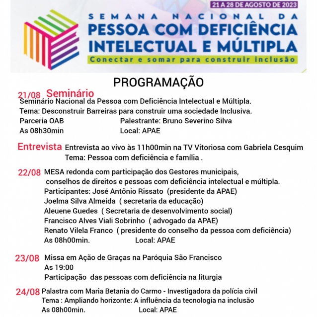 SEMANA NACIONAL DA PESSOA COM DEFICIÊNCIA INTELECTUAL E MÚLTIPLA
